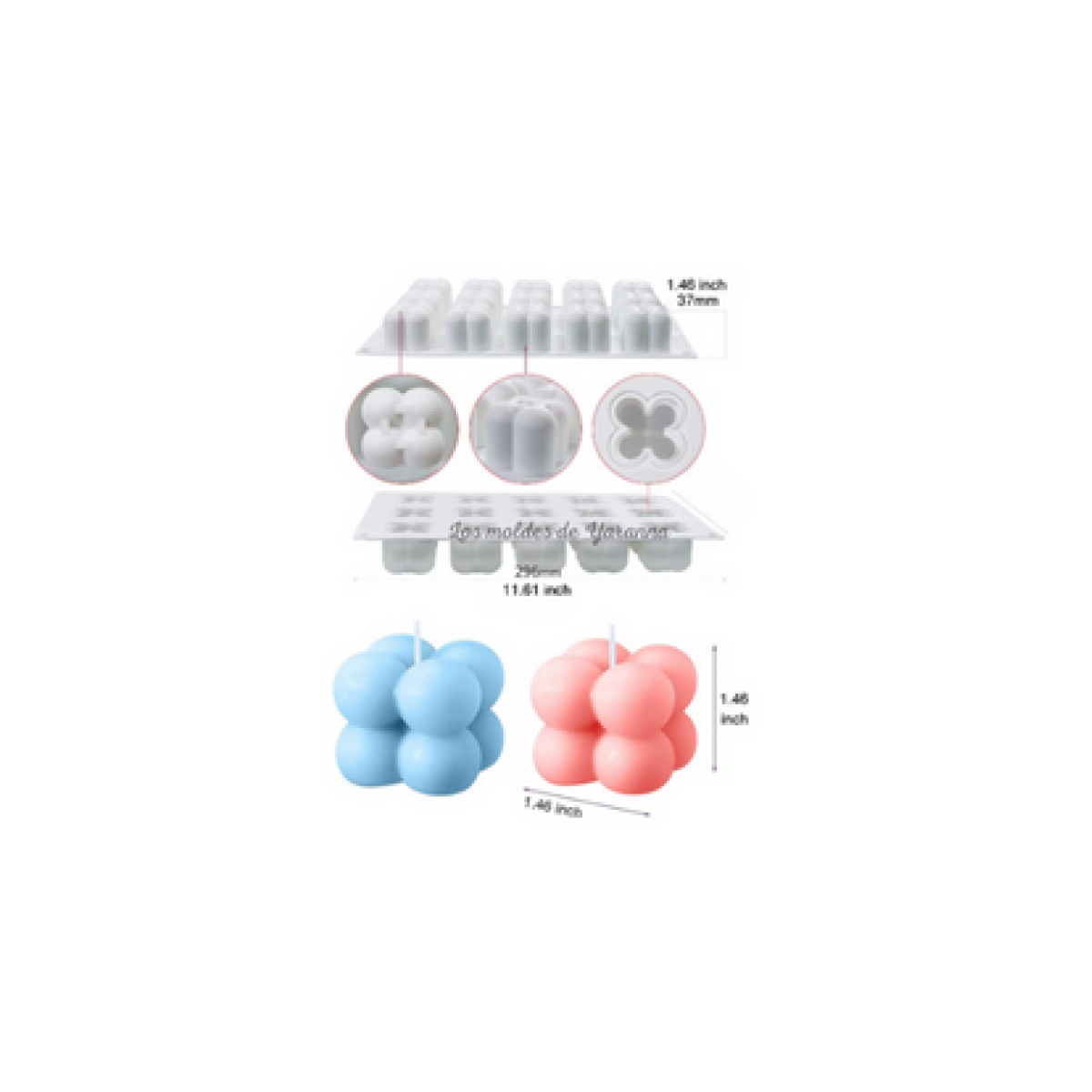 Molde Cuadrados burbujas 15 cavidades.