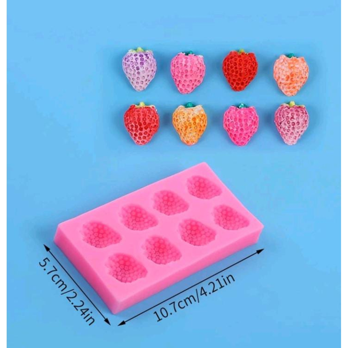 Medida producto terminado: fresas grandes 1.7×2.1 cm, fresas chicas 1.0×1.5 cm