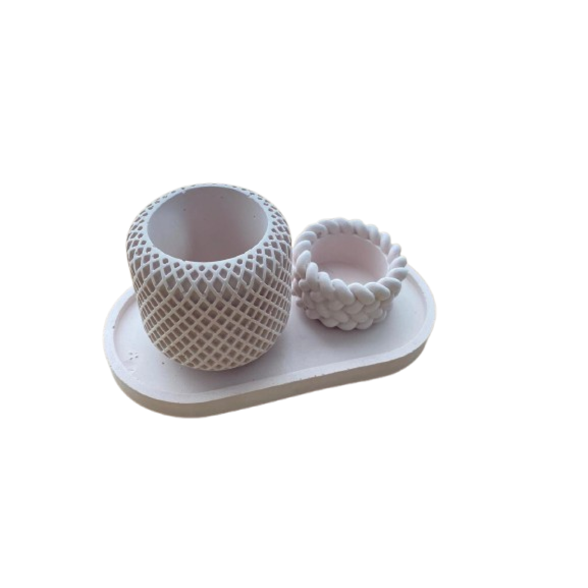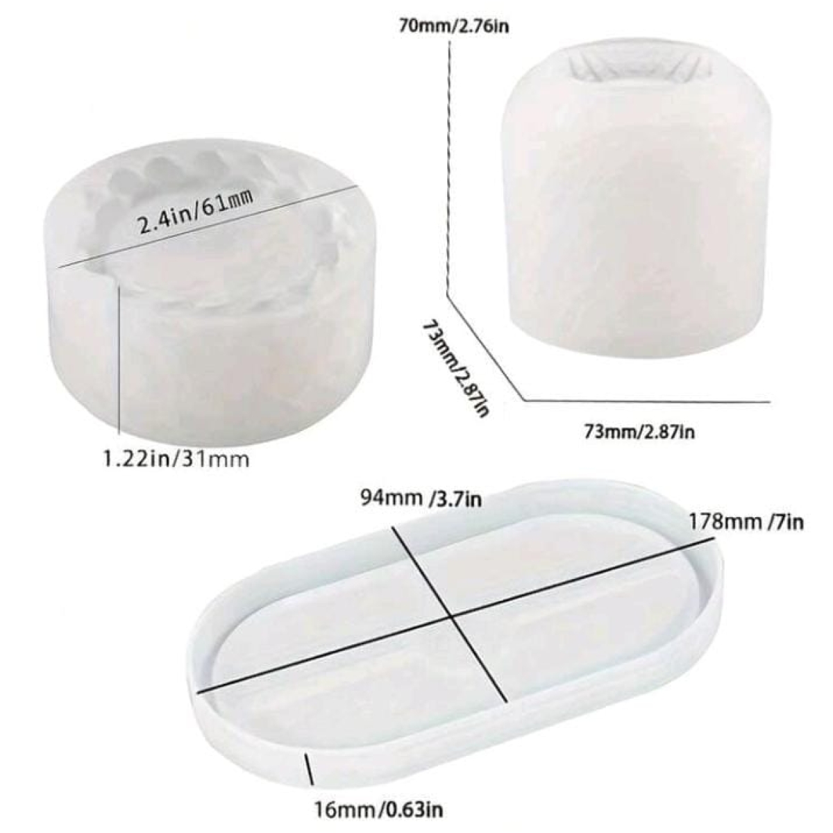 1 molde de bandeja ovalada, 1 molde de taza de vela con rejilla, 1 molde de tarro de almacenamiento con cuerda